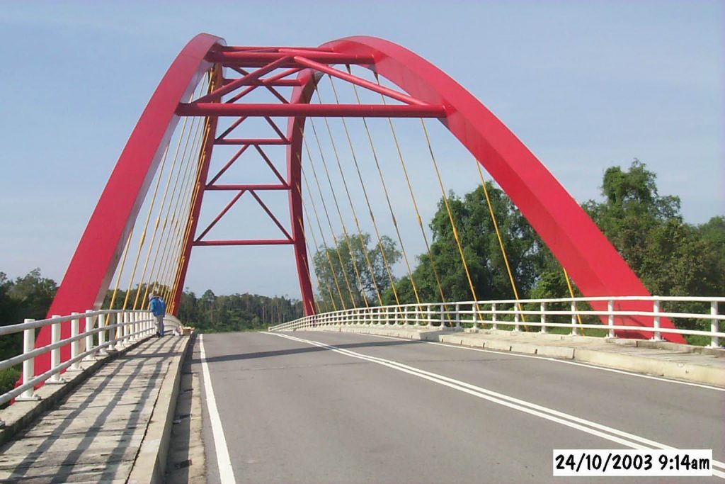 The first Steel Arch Bridge fabricated in Sarawak. 72m span steel Concrete Bridge with an impressive arch design.